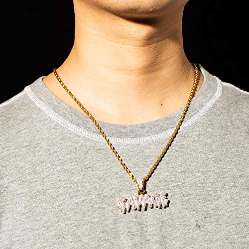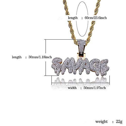 More information about Hip Hop Iced Out Cubic Zircon Drip Bubble Letter Savage Pendant Necklace with 24inch Stainless Steel Rope Chain