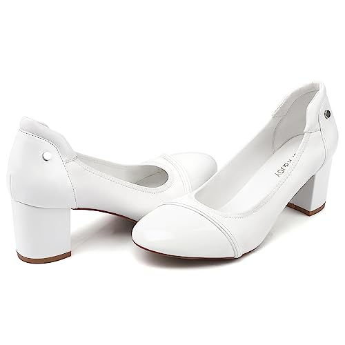 • 【Block Heel】The white pumps for women 2 inch heel is only the right height for both comfort and style, the shape of the toe not too rounded but also not so pointed won't stress