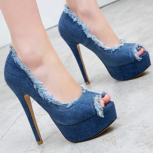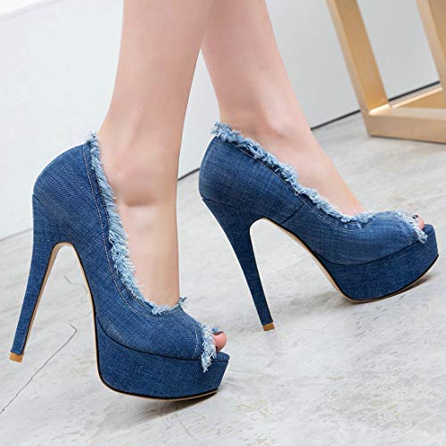 in-demand ! MAVMAX Women's Denim Peep Toe Platform High Heel Stilettos Pumps