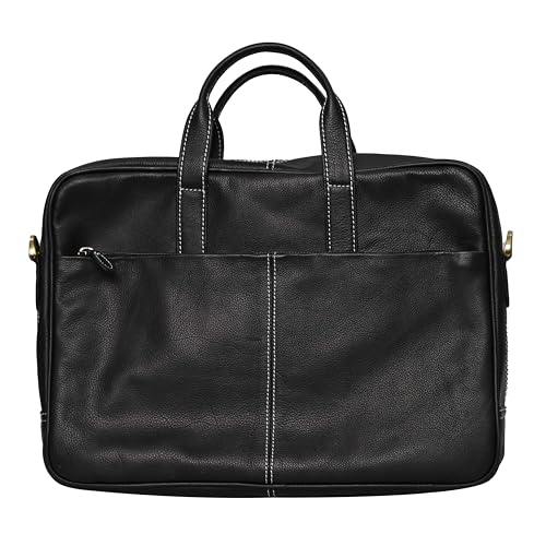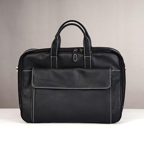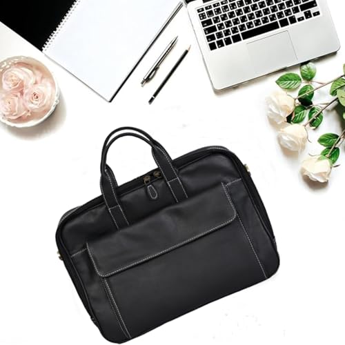 in-demand ! Genuine Leather 15.5 Inch Laptop Messenger Office Bags Business Travel Professional Pure Laptop Bag with Multiple Compartments Leather Bag for Men (Black)