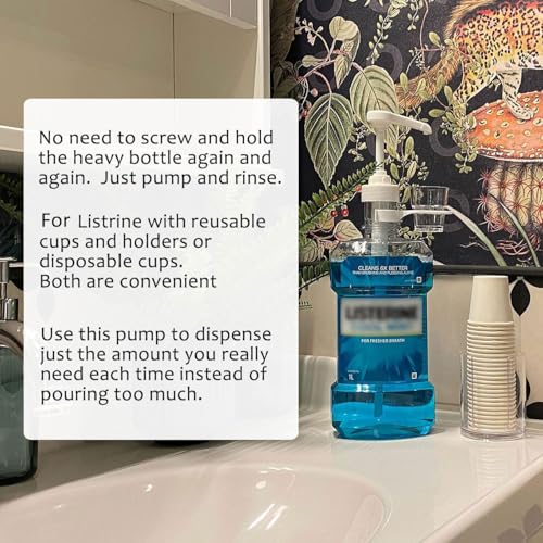 Why Choose Dispenser Pumps for Listerine 1 or 1.5 Liter Mouthwash Bottles with Cup Holders, Resuable Cups and Clear Plastic Paper Cup Dispenser - Fits Total Care, Original, Zero Alcohol, Cool Mint, etc?