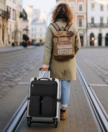 Portable Travel Organizer bag: The innovative design of this stow and go travel luggage organizer is suitable for frequent travelers and busy professionals. It can fit all carry-on luggage and be fixed on the suitcase. You can take out your computer anytime and anywhere to handle urgent matters, and parents can quickly find their children's daily necessities, toys, etc.Durable Waterproof Protection:Crafted from waterproof, breathable, and tear-resistant fabric combined with durable Oxford cloth, this airplane hanging luggage organizer shields contents from splashes and impacts. Safely store clothes, toiletries, kids' toys, and art supplies—its robust construction ensures long-lasting use, making it your reliable travel partner for every adventure.Travel Carry On Bag:Featuring precision-divided compartments: two main pockets with padded laptop sleeves fit devices up to 16 inches; a side slot holds mice, chargers, and keyboards; a triple-pocket design on the other side keeps wallets, passports, tickets, and small valuables organized. Spacious enough for children’s toys, books, snacks, and water bottles—small in size, massive in functionality for both business and family needs.Multi-Functional Design:Top handle for quick grabs. Adjustable top/side straps fit suitcases, café chairs, or strollers. Detach from luggage to use as a multi-compartment travel bag or suitcase organizer—ideal for airport meetings, remote work, or family outings. Switches easily between professional and casual use.Quick-access passport and electronics at security. After seating, unload and convert to a laptop case for work or in-flight sleep essentials like eye masks and inflatable pillows.Lightweight & chic:At 12”x15.2”, it’s ultra-portable to reduce travel bulk. The classic black design exudes business elegance, while the pink variant caters to female travelers—stylish yet practical, perfect for personal use or gifting. Whether for corporate trips or family vacations,the luggage organizer are versatile essential that combines functionality with eye-catching design. Perfect for everyday use. superior materials and excellent craftsmanship ensure long-lasting durability.