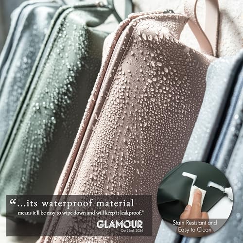LINE+ARC hassle-free-to-Clean Silicone Dopp Kit (As Seen in Glamour and GQ) Extra-Wide Opening Anti-Stain (Mauve, 3.5L) Toiletry Bag Travel Set Makeup Organizer Cosmetics Case Fabric plain Hang Loop