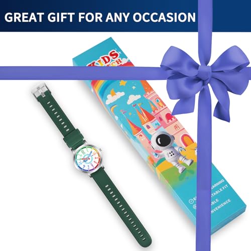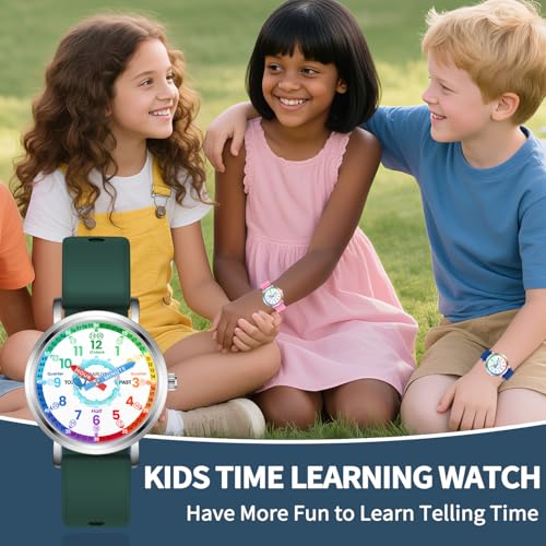 • hassle-gratis READ TIME LEARNING - Kids watch makes learn to tell the time more easier and funny. Colorful dial shows all minute numbers for children easier to read time. "HOUR" and "MINUTE" are labeled on Watch hands for accuracy.