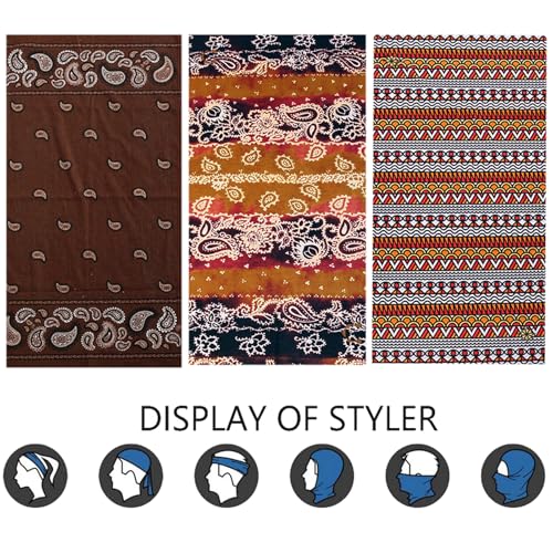 Fabric type: Polyester microfiberCare instructions: Machine Wash or Hand WashOrigin: Imported✅Versatile Headband – Our neck gaiters mask have more than 16 wearing ways. Wear it as face sun and dust mask, windproof for your face, neck warmer for your neck, face cover, tube mask, Light weight helmet,neck sleeve, hair tie, hood, pirate, headband, turban, do-rag, neckerchief, cap, head wear, balaclava, wristband, magic scarf mask. Lightweight and convenience to carry on.✅Extremely Practical to Use – Nice and soft gaiter scarves are useful in yard work around mowing & hedge clipping; great for dust dirt and grime; great for fishing, hunting, running, skiing,walking, hiking, motorcycle riding, boating. Face gaiter shields protecting you against sunlight, wind, sand and more disturbing factors and providing safer and more comfortable.✅ONE SIZES FITS ALL – 19.7 inches long X 9.8 inches wide. Soft & elastic head circumference is about 20.47 to 25.59 inches. It fits almost all heads or faces. Suitable for your husband,wife and kids, also as great gifts for Arbor Day, Mother's Day, Father's Day, Labor Day, Christmas, Halloween, various festival or vocation.✅Comfortable and Works Well – Polyester microfiber, elastic seamless, breathable, soft . Head wear scarf is lightweight, moisture wicking fabric that helps to keep you dry and cool. Very functional mask shields can be worn in various ways to match your clothing in all seasons.✅PACKAGE AND chic – Package comes with 12, 9 or 6 patterns face gaiter cover in total with different color, each one is individually wrapped by a plastic plastic bag, which give instructions and show you different ways to wear. We offer a lot of varies patterns to option, like camouflage, joker, hunting, skull, skeleton, fish, solid and flag gaiter bandanas. Perfect for everyday use. first-class materials and excellent craftsmanship ensure long-lasting durability.