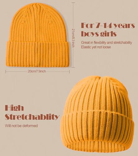 Kids Merino Wool Beanie Hat,Unisex Children comfortable Winter Cuffed Ski Caps retro Knitted Skull Caps for Boys Girls 7-14Y