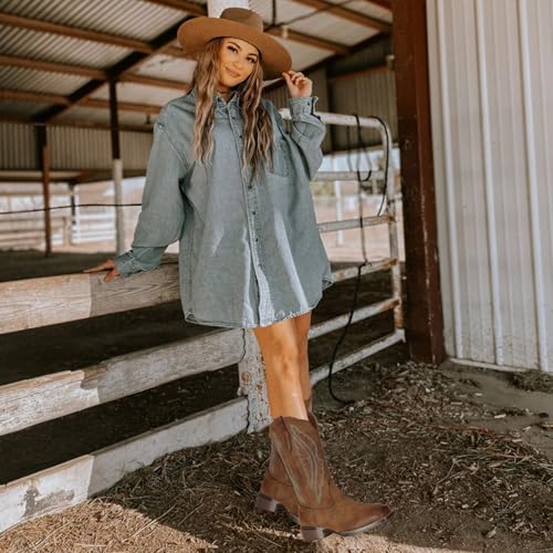 J's.o.l.e Women's Cowboy Boots Square Toe Wide Calf Cowgirl Boots Western Work Boots Embroidered