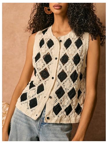 Why Choose GORGLITTER Women's Crochet Vest Checkered Button Front Knit Boho Western Trendy 2025 Sweater Tank Top?