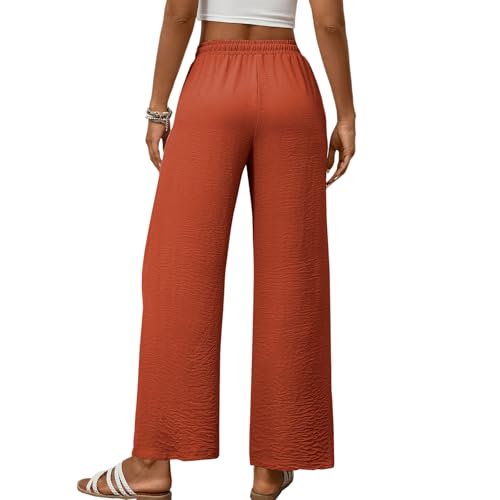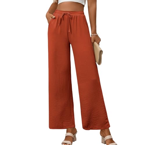 WOWULOVELY Womens Wide Leg Palazzo Pants Flowy Elastic Waist Tie Pant Casual Loose Solid Trousers