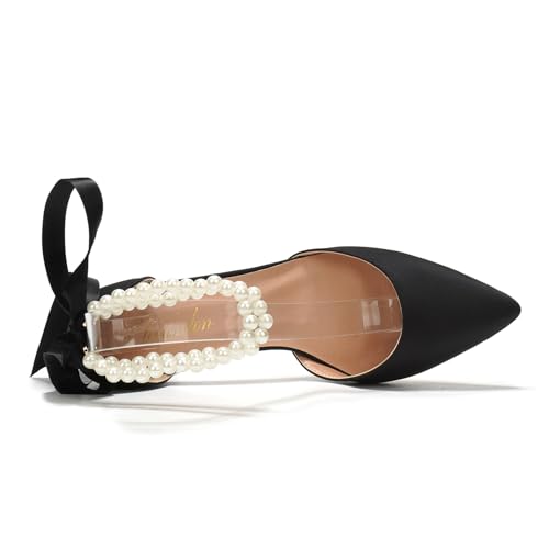 Sole material: RubberOuter material: SatinClosure type: BuckleSatin Upper: Crafted from high-quality satin, these sandals offer a luxurious and smooth texture, perfect for evening events or weddings, blending elegance and comfortPointed Toe Design: The chic pointed toe provides a sleek and refined look that elongates the legs, ideal for formal occasions such as weddings or bridal partiesMid-Height Block Heel (2.36 inches): The mid-height block heel offers the perfect balance of added height and stability, ensuring comfort for all-day wearDouble Pearl Strap: Featuring two delicate pearl straps around the ankle, these sandals bring a touch of elegance and uniqueness, making them perfect for bridal or party eventsMultiple Color Options: Available in a variety of colors including Black, Hot Pink, Dark Blue, Sky Blue, Ivory, Violet, Violet Red, and Dark Green, these sandals cater to different styles and occasions Perfect for everyday use. first-class materials and excellent craftsmanship ensure long-lasting durability.