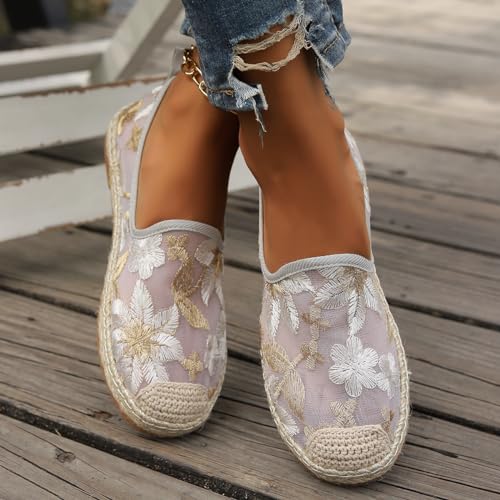 Why Choose Chinese Summer Shoes for Women Mesh Shoes, Chinese Mesh Flats for Women, Embroidered Slip on Mesh Shoes (White Gold,8.5)?