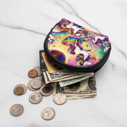 More information about Portable Coin Purse Magical-Horse-Planets-Rainbow Mini Zippered Money Pouch Card Holder
