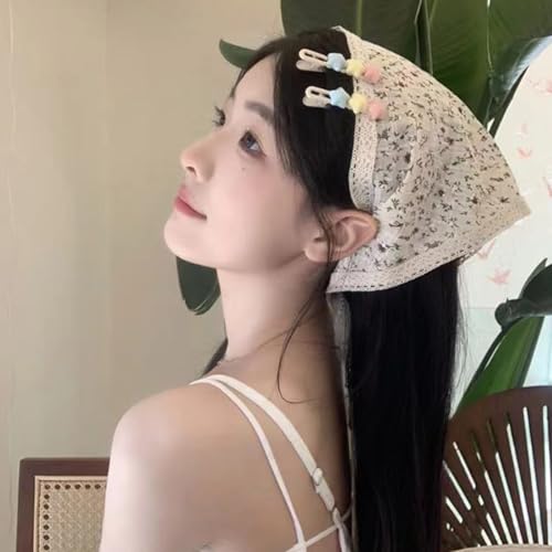More information about Lace Trim Triangles Hair Scarf Rose/Floral Pattern Kerchief Tie Back French Turbans For Girl Beach Photo Tool
