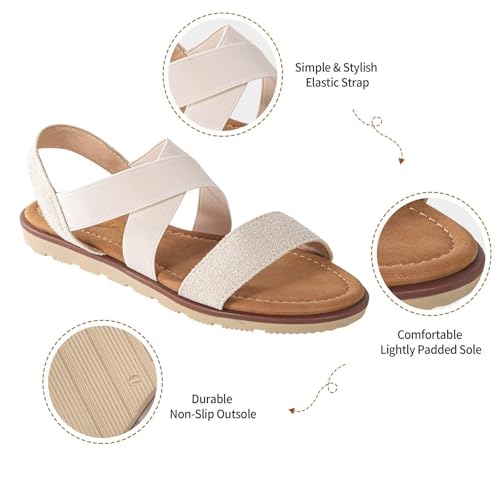 Women's Elastic Flat Sandals - Comfort Open Toe Elastic ankle strap Slip on Casual Walking Summer Shoes