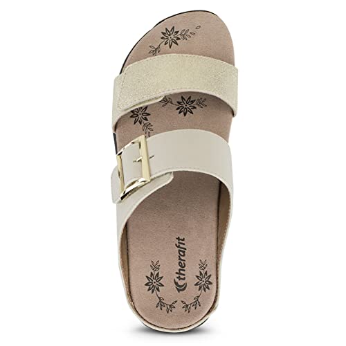 in-demand ! Therafit Mandy Women's Color Block Leather Adjustable Sandal - for Plantar Fasciitis/Foot Pain Brown / 9