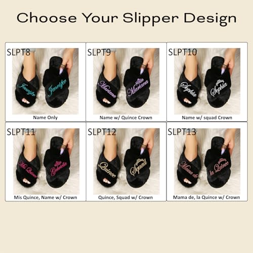 • SEVERAL COLORS & DESIGNS: We offer our quince slippers in several colors including white, ivory, black, pink, grey and dusty rose. Choose from different templates for the Mis Quince, Mama De La Quinceanera and Quince Squad.