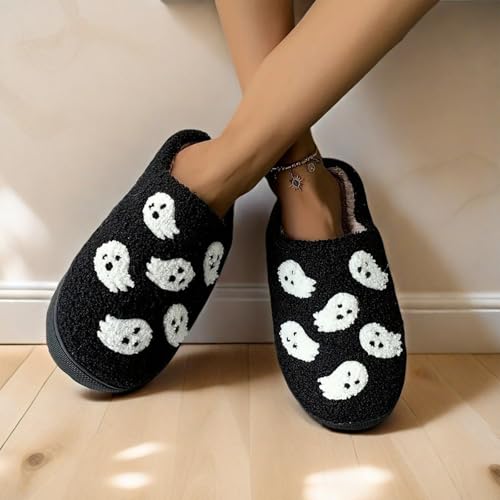 Halloween Pumpkin Cookies Slippers for Women Mens Halloween Ghosts Slippers Memory Foam Plush Winter House Home Shoes