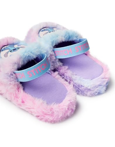 • PREMIUM MATERIALS: Made with high-quality materials, these slippers boast an ombre fur design in pink and blue, perfectly complementing the character's appearance. The wide elastic heel strap and printed Stitch text ensure a secure fit.