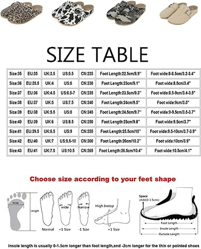 Sole material: PlasticOuter material: 帆布Closure type: BuckleMade of natural cork insole, which can effectively disperse the pressure on the foot .non-slip wear-resistant environmental protectionSlip On Mules: Backless slip on mules, slip on sneaker paired best with your favorite denim pants and a t-shirt.【Adjustable Copper Buckle】 The buttons on the upper are also adjustable and fits everyone regardless of the foot typeFeature:Leopard Print and Cow Print parrtern,Fashionable and versatile.Backless slip-on mule design,easy slip on and take offClogs can be worn indoors or for various outdoor activities, such as playing with children, cooking in the kitchen, picking up mail, drinking afternoon tea in the courtyard, watering the lawn, throwing garbage, going out to sign packages, or walking impeccable for everyday use. first-class materials and excellent craftsmanship ensure long-lasting durability.