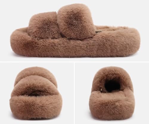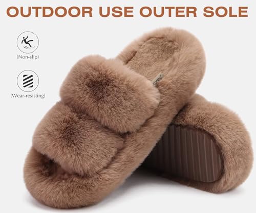 COFACE Women's Fuzzy Slippers Memory Foam Open Toe Slip-On House Shoes Size 5-11