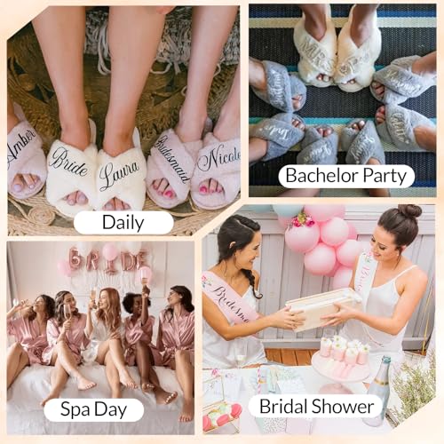 Personalized Bride Slippers for Wedding Day, Custom Bridesmaid Slippers with Name, White Fuzzy Slipper for Bridal Showers Bachelorette Parties, Personalized Bridesmaids Gifts for Wedding Day