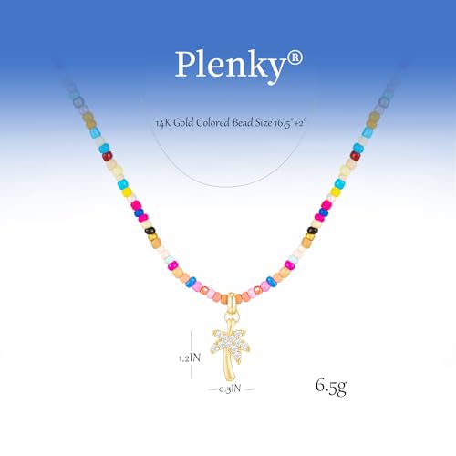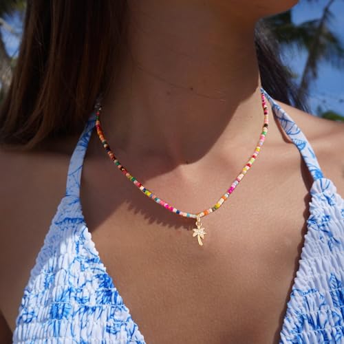 Gold Necklace for Women-Colorful Beaded Necklaces 14K Gold Plated Bohemian Choker Shell, Starfish, Palm Tree, Conch Shell Beachy Jewelry for Women Gifts