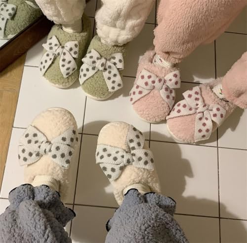 Womens Winter comfortable House Slippers Cute Bow Fluffy Indoor Home Slipper Non-Slip gentle Warm Maternity Shoes
