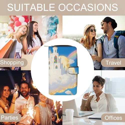 Cloud Castle Printed Leather Wallet, Multifunctional Leather Purse, Compact Card Holder Wallet, Pattern Wallet, Travel & Daily Use Wallet