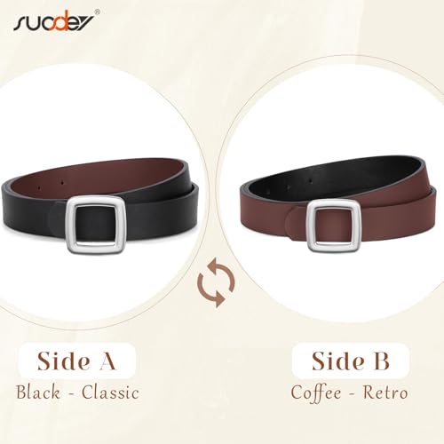 SUOSDEY Women Reversible Leather Belt Two Color-in-One Square Buckle Fashion Belt for Jeans Pants Dresses Coat
