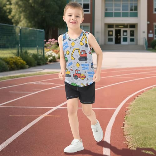 JUNZAN Construction Vehicles Gray Boys Athletic Tank Top Sleeveless Casual Vest Tees Toddler Tees for Fitness Travel Swim 3T