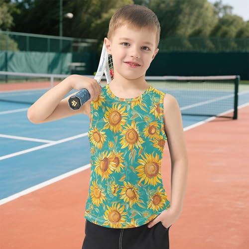 JUNZAN Cartoon Sunflower Star Teal Boys Tshirts Tank Tops Sleeveless Teens Vest Active Tees for Running Sports Beach 3T