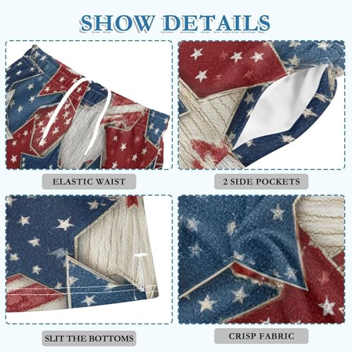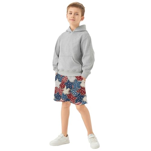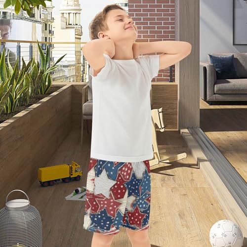 DOMIKING Blue Red Stars Kids Shorts Pull-on Boys Shorts with Elastic Waist Casual Athletic Pants for Playwear Summer Outdoor