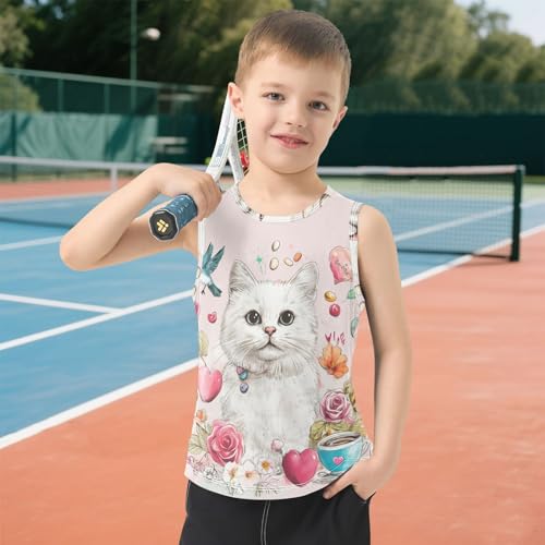 Bolaz Boys Athletic speedy Dry Tank Top Sleeveless Workout T Shirts Age 11-15,Cartoon Cat and Floral