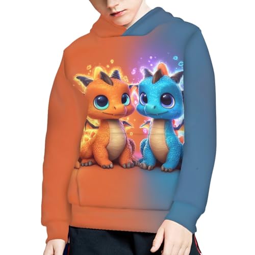 WELLFLYHOM Dragon Girls Boys Hoodies Graphic 6-16 Long Sleeve Sweatshirt Kangaroo Pocket Kids Sweater for Yoga Sports