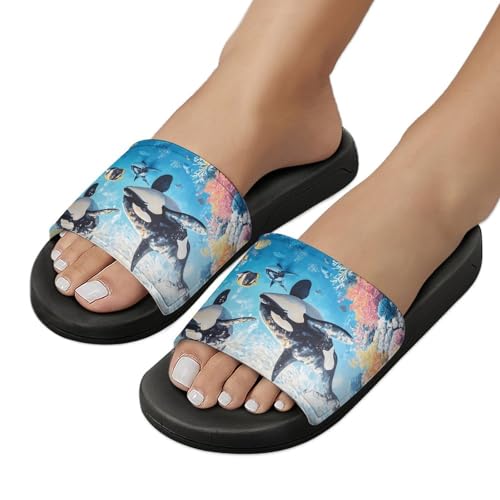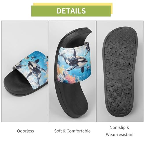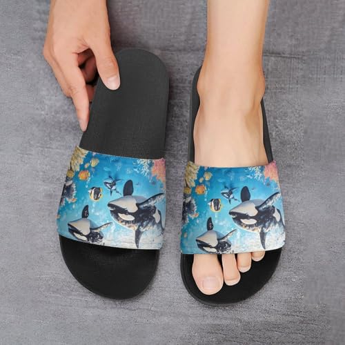 Shark Whale Ocean Coral Fish Men's Bathroom Slippers Shower Indoor Home Beach Outdoor Shoes for Women