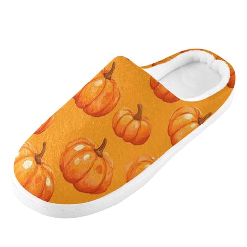 JUNZAN Fall Pumpkins Mens House Cotton Slipper Wide Memory Foam House Shoes for Travel Christmas Presents 6-7