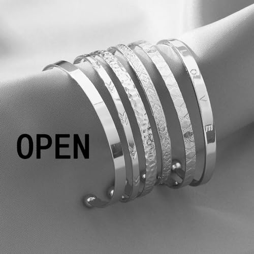 • 【6 Separate Silver Bangle】:This Bracelet set for women consists of 6 style bangle, rare stack chunky element for wear alone or stack,snag boho look for special charms.