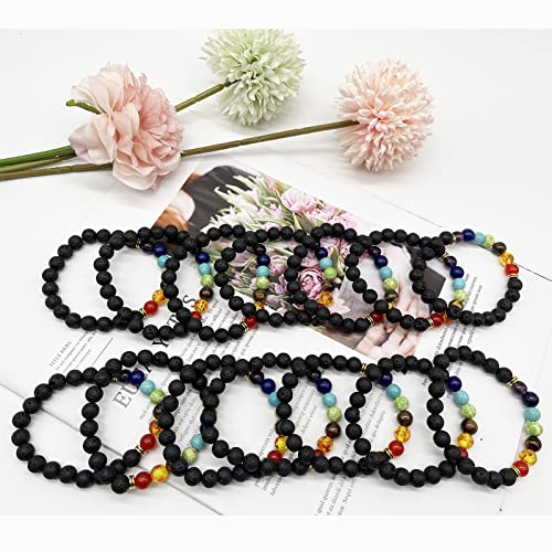 14 Pcs Lava Rock 7 Chakra Energy Oil Diffuser Bracelet Set for Women Men Unisex Elastic 8mm Stone Yoga Beaded Bracelets Jewelry With Lucky Healing