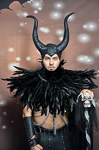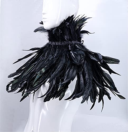 More information about Gothic Real Black Feather Cape Shawl Shoulder Wings Choker Collar with 1 Pair Feather Cuffs, Unisex Fashion Feather Cape Shrug Shawl Stole Poncho, Halloween Cosplay Costume Party for Women Men