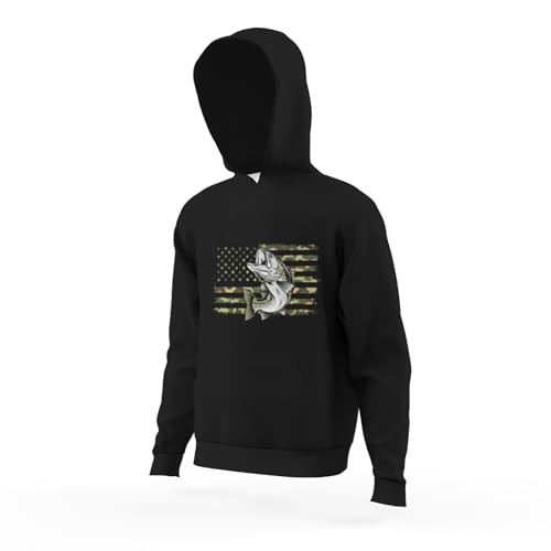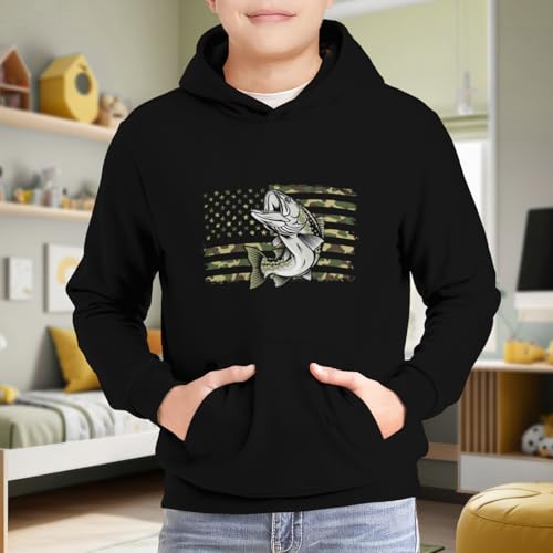 in-demand ! Kids Fishing Camouflage US American Flag Bass Fish Fisherman Boys Girls Lightweight Kangaroo Pocket Fleece Hoodies