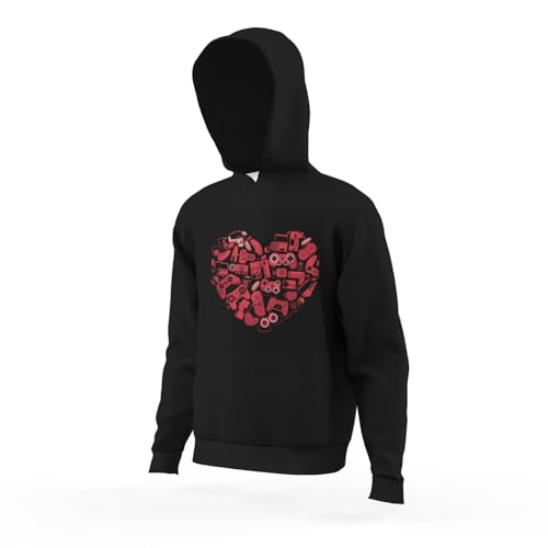Kids Funny Video Game Player Heart of Controllers Valentine's Day Gamer Boys Girls Lightweight Kangaroo Pocket Fleece Hoodies