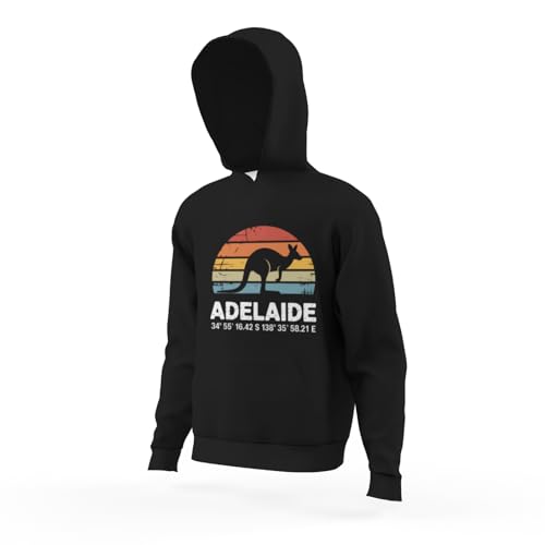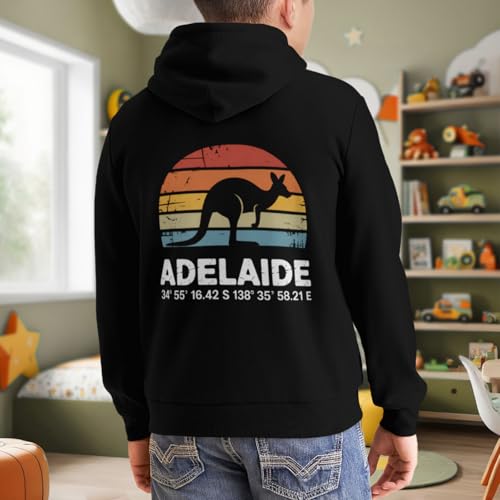 Kids Adelaide Australia iconic Distressed Retro Sun Kangaroo Boys Girls Lightweight Kangaroo Pocket Fleece Hoodies