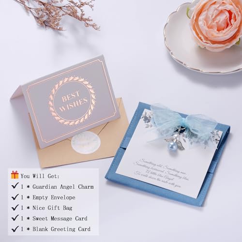 Ralukiia Something Blue Angel Charm, Bride Memorial Bouquet Charm for Wedding Remembrance Mom or Dad in Heaven, Guardian Angel for Wedding, Memory Gifts for Bride