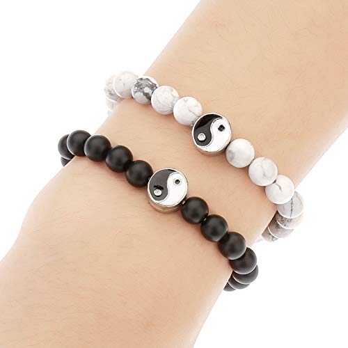 Material: StoneMetal type: AlloyClasp type: Easy HookChain type: Bead ChainThis bracelet contains Chinese Tai Chi patterns, also named yin yang symbol. The color consists of black and white. The bead size is 8MM. It is elastic, about 19 cm. Can fit all wrists of men and women.Taiji is an ancient Chinese philosophy about the natural world and is one of the central elements of traditional Chinese culture. The word Taiji itself refers to the ?great primal beginning? of all that exists, and is often translated as the ?Supreme Ultimate?. It is the state of absolute and infinite potential, the oneness before the duality.The meaning of yin yang is illustrated through the duality of nature. When uninterrupted, these natural occurrences signify the perfection of chi energy completed by its two halves, female (yin) and male (yang). This creates balance and harmony in all forms of life.A very suitable gift for jewelry collection, birthstone collection, anniversary, valentine's day, christmas, new year, birthday, father's day, prayer, promise and more.Each bracelet is packed in a transparent plastic bag. impeccable for everyday use. first-class materials and excellent craftsmanship ensure long-lasting durability.