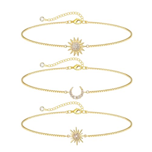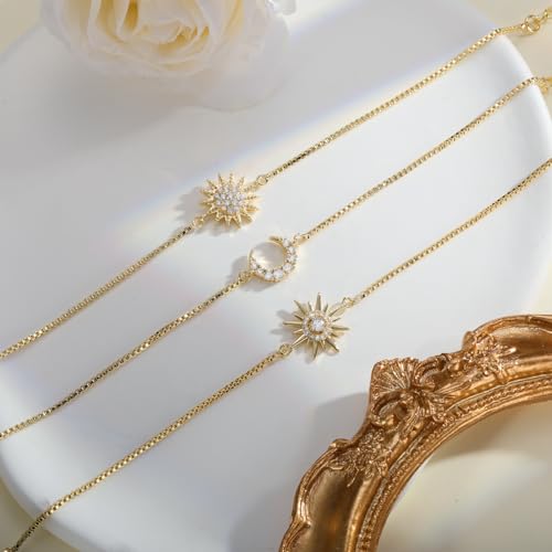• Gold Bracelet Set:The gold bracelet stack contains 2 sun bracelets and moon bracelet,they are remarkable for layering with other gold bracelets as well as wearing alone