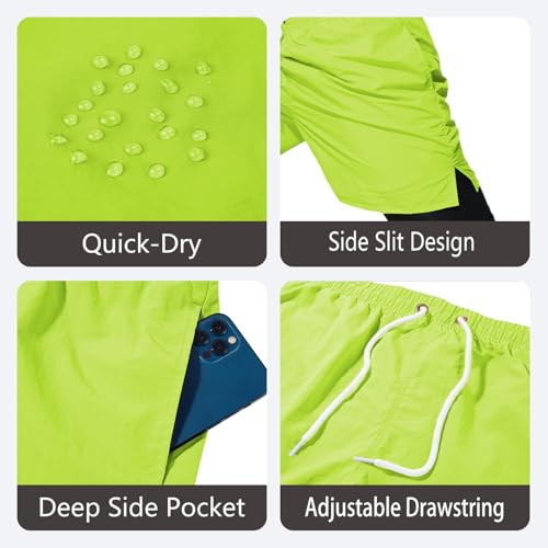 Mens Swim Trunks with Compression Liner speedy Dry 5 inch Inseam Beach Shorts Swimwear Board Shorts Bathing Suit
