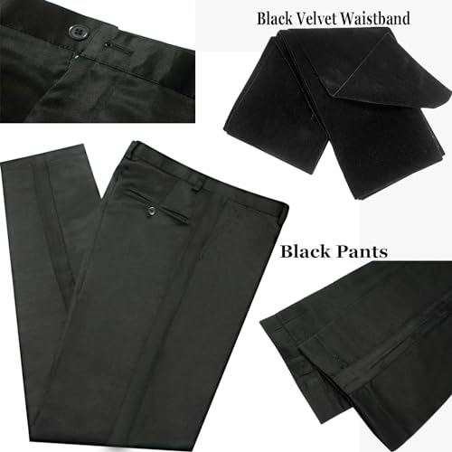 • 5 Pieces Suit for Men: Venom Black Jacquard blazer + black pants + satin cape + shoulder patch + black velvet belt. The Slim Jacket is made of shiny jacquard fabric,pleasant, breathable ,wrinkle resistant and easy to keep the shape. The men suit with cape has the exceptionally handpicked features of work on the design and fabric.