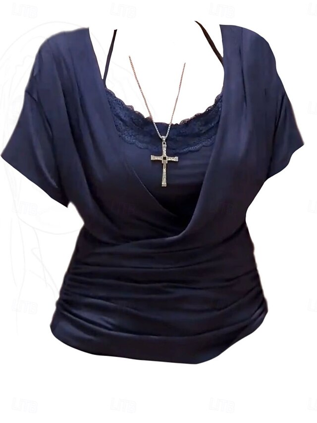 More information about Women's Lace Shirt Solid Color chic new-age Short Sleeve Halter Neck Regular Tops Daily Holiday Lace Patchwork Black Navy Blue Purple Summer