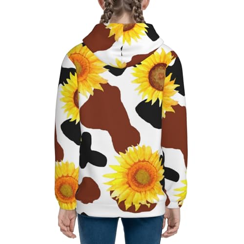 Sunflower Cow Kids Pullover Hoodies Boys Zip Up Sweatshirts Girls Athletic Clothes with Pocket