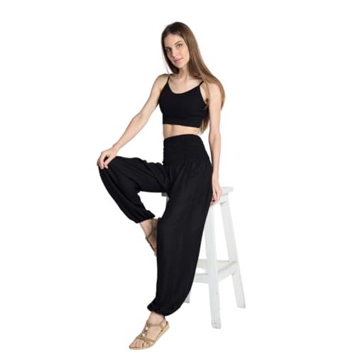 Fabric type: 100% RayonCare instructions: Hand Wash OnlyOrigin: ImportedClosure type: Pull OnCOMFORTABLE: Baggy fitting & flattering in all the right places, our high rise harem pants have a slimming smocked waist & stretchy elastic at the ankles. Wear the cool hippie pants as tummy control yoga bottoms, pajama pants, dance pants & much more!HAS 2 POCKETS: Unlike other loose pants with tight ankles, these boho women’s harem pants have pockets on the side for tucking away your phone, keys, wallet, snacks, etc. Style them as sport jogger pants, lounge pants, music festival pants or dancing pants.SOFT AS CAN BE: Athletic but modest, our flowy pants are perfect work casual pull on pants for women to wear in summer / spring / fall / winter. Made from bamboo derived rayon, they’re breathable, lightweight & smooth but strong, sturdy, durable & no-show.LOTS OF VARIETY: Order a chic pair of black harem pants or grab a mixed high waisted trouser assortment in XS S M L or XL for your capsule wardrobe. Inspired by mandalas, flowers & other spiritual motifs, our viral tribal prints are unique, colorful, chic & classy.EXTRA VERSATILE: Whether stretching, traveling, at the gym or headed to the office, our high waisted boho pants will have you feeling comfy, cute & confident. Wear them with heels & accessories or as travel pants, meditation pants & more. Great gift for her! Perfect for everyday use. first-class materials and excellent craftsmanship ensure long-lasting durability.